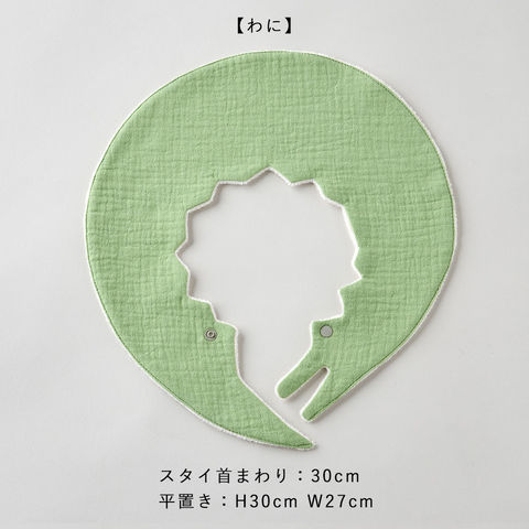 | サイズ | チューリップホワイト/ピンク スタイ首まわり:30cm 平置き:H29cm W27.5cm わに スタイ首まわり:30cm 平置き:H30cm W27cm きつね スタイ首まわり:30cm 平置き:H30.5cm W32cm |
