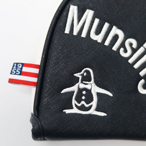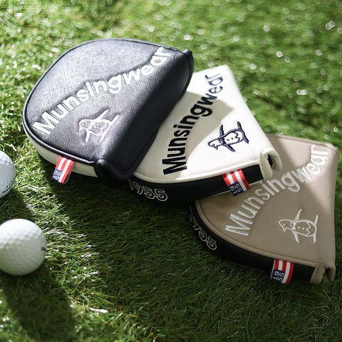 1886年創業のMunsingwearを象徴する曲線的なロゴと、繊細なリトルピートのモチーフを配置。主張しすぎないのに印象に残るデザインで、パター周りを上品に演出します。