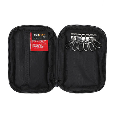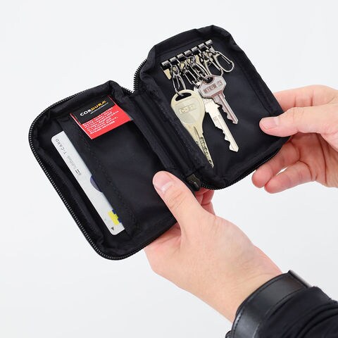 手のひらサイズで持ちやすく、カラビナ式6連キーリングにより複数の鍵をすっきり収納。ジップ開閉で紛失防止も万全です。
