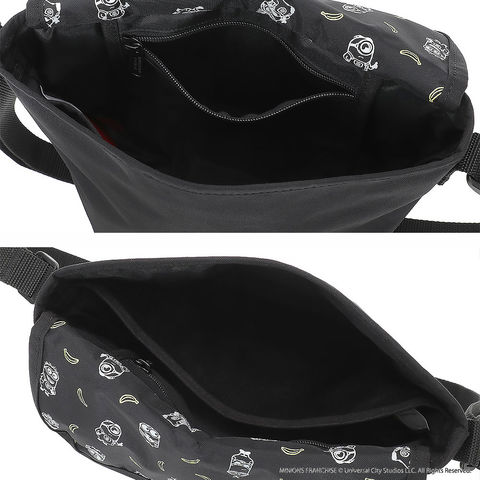 モデルごとに異なるアートワークを採用し、「ミニオン」のコミカルで愛らしい動きや表情を『怪盗グルー/ミニオンズ』シリーズのロゴとともに刺繍で表現。さらにフラップ裏にはミニオンと大好物のバナナのプリントを施し、バッグの中まで賑やかなデザインに仕上げています。細部までミニオンの世界観を楽しめる遊び心あふれるバッグです。