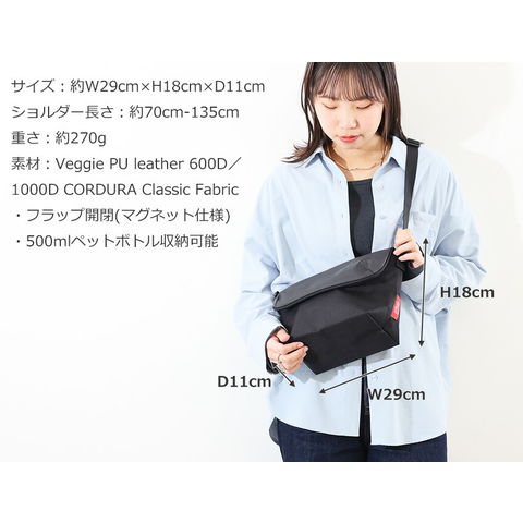 マンハッタンポーテージ ナイロンメッセンジャーバッグ バックポケット ディバイダーマグネット ベジレザー ハイドロフォビック