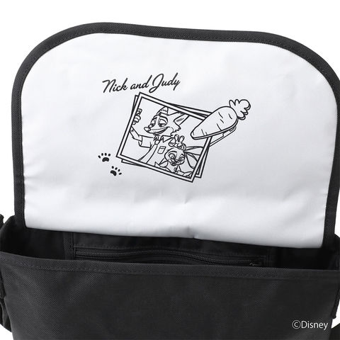 ジュディとニックをあしらったフラップデザインに加え、ブランドラベル横には足跡の刺繍をさりげなく配置。作品のメッセージである誰でも何にでもなれるという印象的なフレーズをレターロゴで表現し、日常に作品世界がそっと寄り添う仕上がりです。