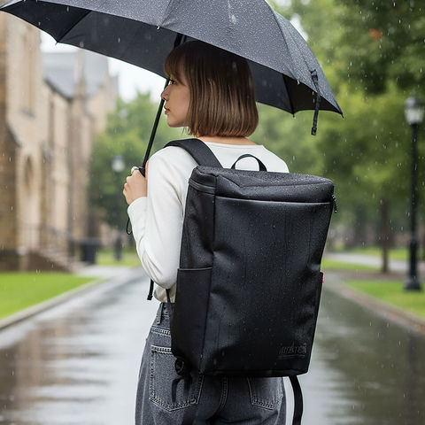 メイン素材には高強度で軽量なコーデュラHPファブリックを採用し、裏面には防水加工を施した仕様。さらにフロントパネルには防水性に優れたターポリンビニールを使用しています。タフで実用性の高い素材構成により、雨の日の通勤や通学でも安心して使えるバックパックです。