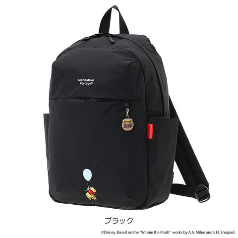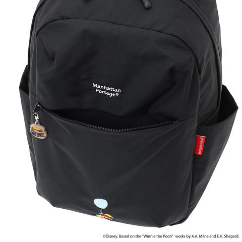 風船につかまれて空を飛ぶほのぼのとした「プーさん」のアートワークが目を引くリュック。