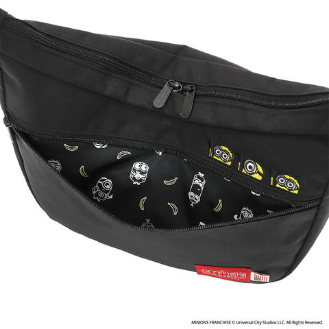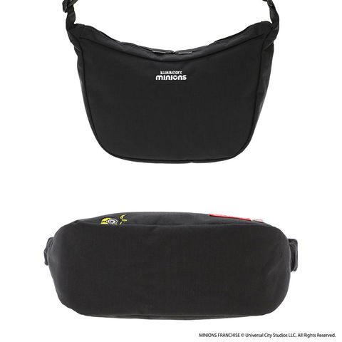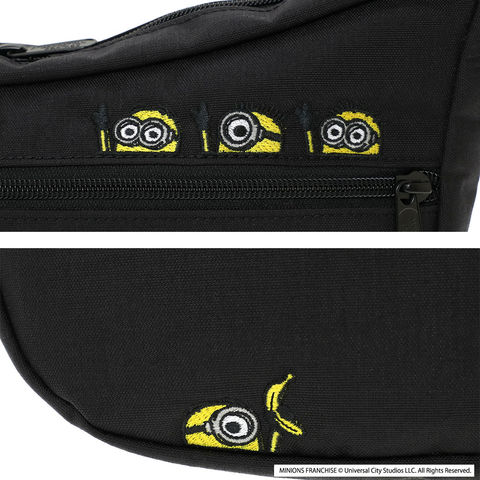 モデルごとに異なるアートワークを採用し、「ミニオン」のコミカルで愛らしい動きや表情を刺繍で表現。背面には『怪盗グルー/ミニオンズ』シリーズのロゴ刺繍を配置し、フロントポケット内側にはミニオンと大好物のバナナのプリントを施しています。外側だけでなくバッグの中までミニオンの世界観を楽しめる、遊び心あふれるショルダーバッグです。