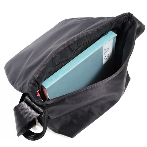 必要最低限の荷物の他に、500mlペットボトル、B5サイズも余裕をもって収納可能です。