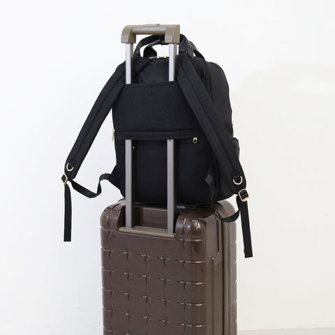 背面ベルトを使えばキャリーバーに固定可能。移動時の負担を減らし、出張や旅行でも快適に持ち運べます。A4ファイルや500mlボトルも収まる容量で、日常から移動の多いシーンまで幅広く活躍します。