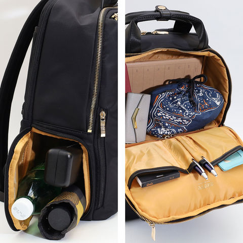 merve メルヴェ ルイーズ リュックサック ビジネスバッグ レディース A4 通勤 シンプル 撥水 PC13インチ対応 mv010 オールシーズン 14L バッグ デイパック バックパック【41ブラック×ゴールド】