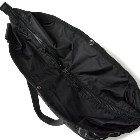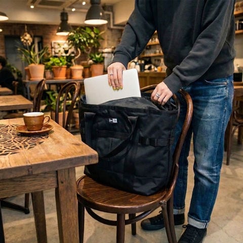 開口部はファスナー付きの上蓋仕様。突然の雨や移動中の衝撃から中身を守ります。中身が見えにくく、防犯面にも配慮された安心設計です。