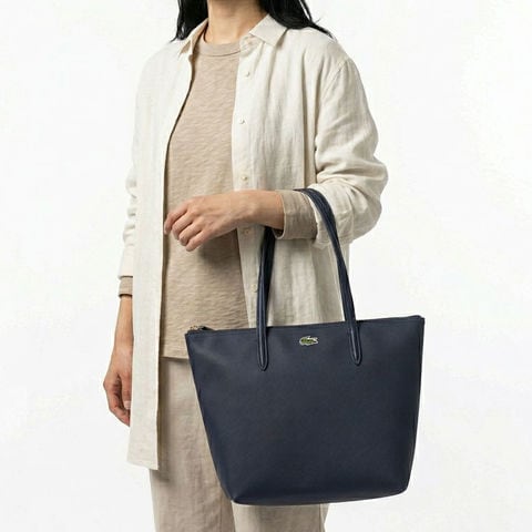 装飾を抑えたミニマルなフォルムが、ラコステらしい洗練された雰囲気を演出します。ブランドを象徴するワニロゴがさりげないアクセントとなり、上品な存在感をプラス。カジュアルからきれいめまで幅広いコーディネートに合わせやすいトートバッグです。
