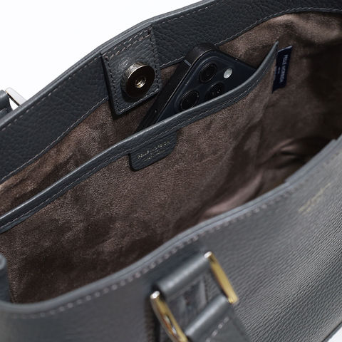 水や汚れに強い撥水レザーを採用。天候を気にせず使える機能性と、上品な質感を両立。オンオフ問わず活躍するデザインです。