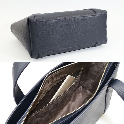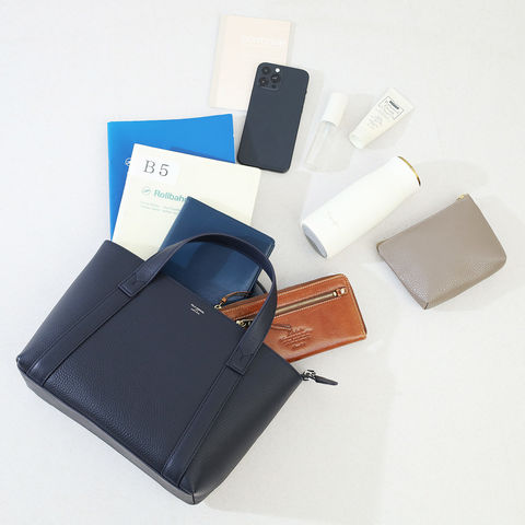 定番のミニトートにファスナーを追加することで、カジュアルさを抑えた上品な印象に。開閉部をしっかり閉じられるので、人混みの中でも安心して持ち運べます。