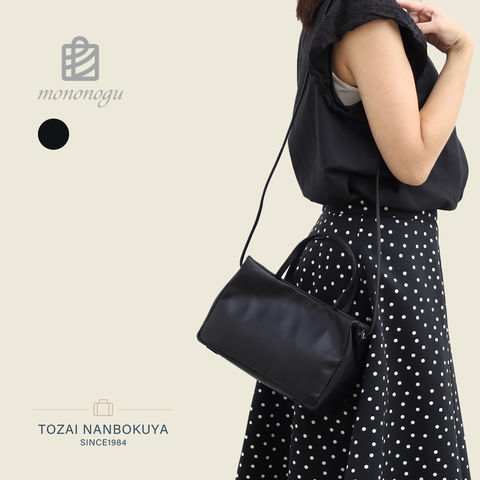 mononogu モノノグ ショルダーバッグ po3-lk レディース オールシーズン お出かけ 小さめ 小ぶり 上質 斜め掛け バッグ ボストンバッグ ハンドバッグ B5 スモールサイズ レザー【ブラック】