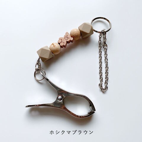 シリーズ案内 オリジナルウッドビーズ Hoshikuma(ほしくま)デザインのシューズピンチ。