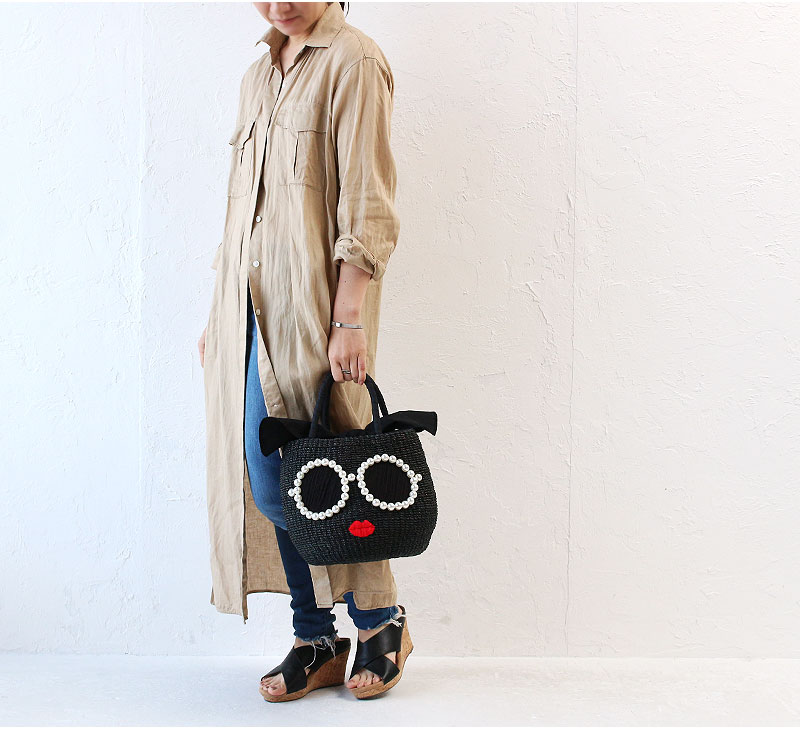 サングラスやスマイルをモチーフとしたバッグや小物で大人気のアジョリーから、パールで縁取られたサングラスが特徴的なカゴバッグが登場。強度と発色の良さが魅力の天然素材のアバカ(マニラ麻)を使用してしっかりと編まれた人気のカゴバッグです。