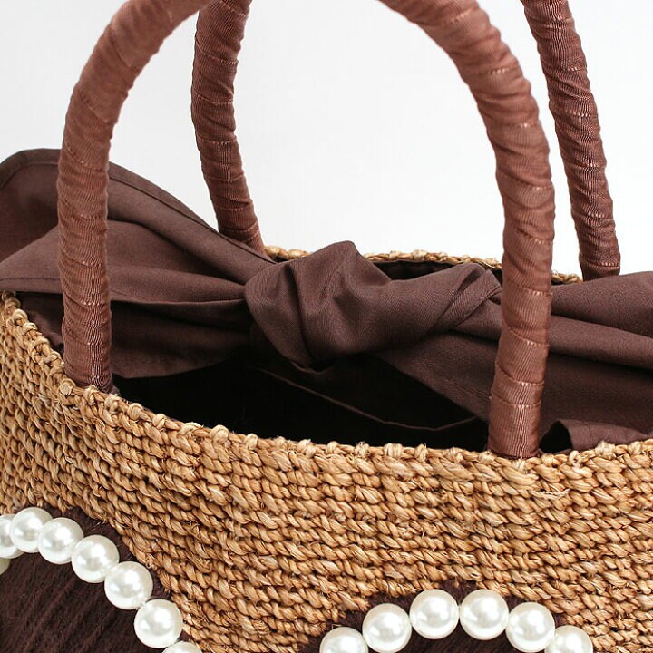 ハンドル部分にはリボンが巻かれており、カゴ特有の持った時に手がチクチクすることもありません。間口が広く物の出し入れもスムーズで、オープントップの生地でリボンを結べばバッグの中身を軽く目隠しもしてくれる上に、キュートさもUP♪