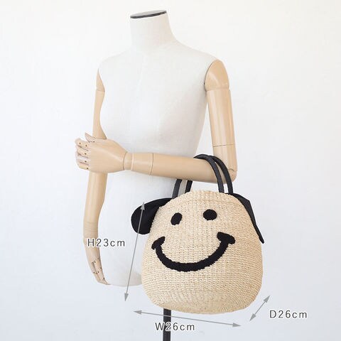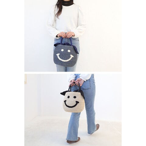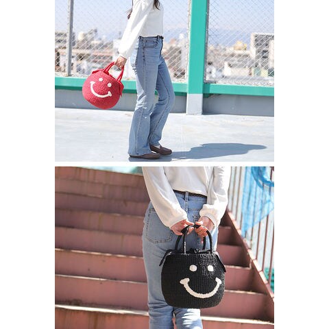 サングラスやスマイルをモチーフとしたバッグや小物で大人気のアジョリーから、スマイルマークが大きく描かれたカゴバッグが登場。