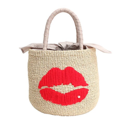 大きなリップマークが特徴的なカゴバッグ