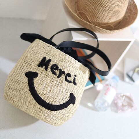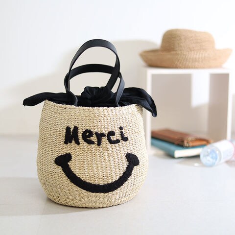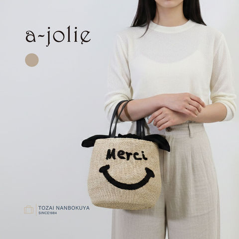 a-jolie アジョリー スマイルかごバッグ カゴバッグ メッセージロゴ ハンドバッグ ニコちゃん si-2006 レディース 夏コーデ お出かけ ユニセックス バッグ かごバッグ【BLEACHMerci】