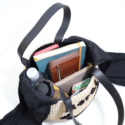 ハンドル部分にはレザーを使用しており、手に馴染みやすく持ちやすい設計です。天然素材のバッグに上品なアクセントを加え、カジュアルな中にも大人らしい雰囲気を演出します。デザイン性だけでなく、毎日使いやすい快適な持ち心地にもこだわっています。