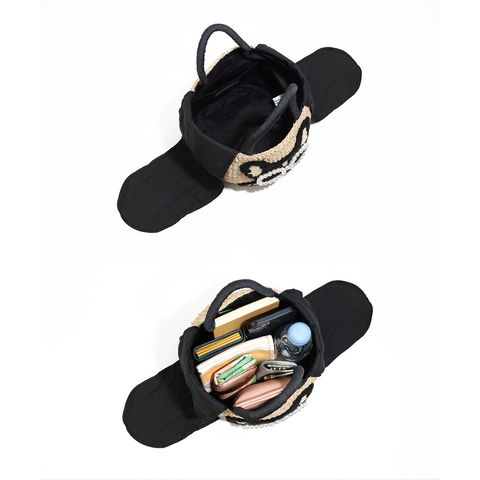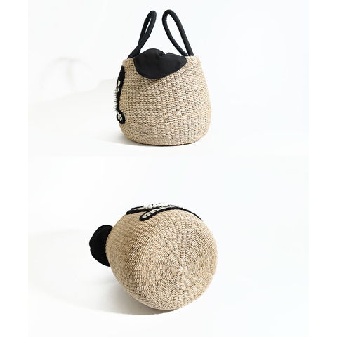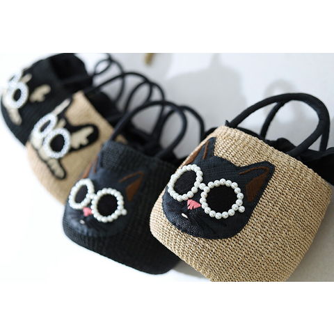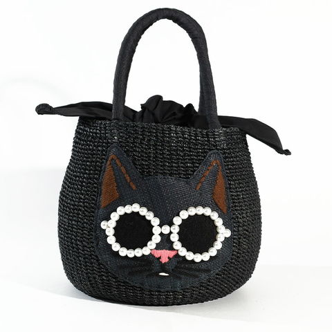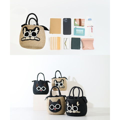 パールサングラスをかけた可愛い動物たち。コロンとしたラウンド型のかごバッグです。