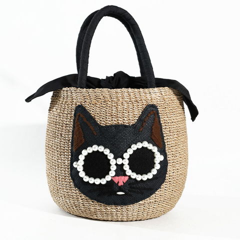 パールサングラスをかけた可愛い動物たち。コロンとしたラウンド型のかごバッグです。