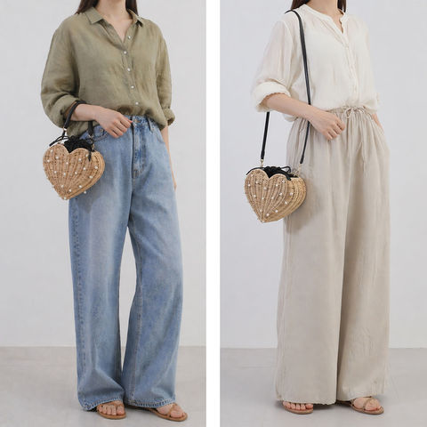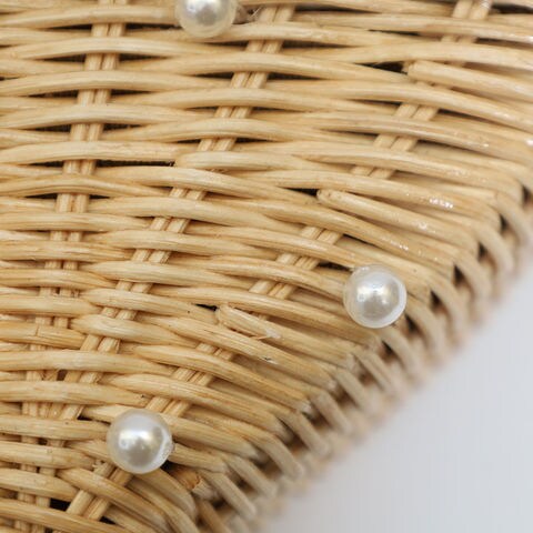 バッグ全体に散りばめられたパールが、華やかで女性らしい印象を演出。カゴバッグのカジュアルさに上品さをプラスし、普段使いはもちろんきれいめコーデにも自然に馴染みます。持つだけでスタイルを格上げしてくれるデザインです。
