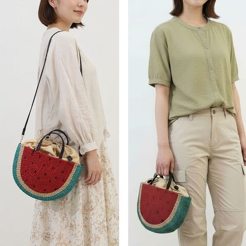 アジョリーならではの「大人可愛い」世界観を表現したデザイン。遊び心のあるすいかモチーフも、子供っぽくなりすぎず上品に仕上げられており、持つだけでコーデの主役になる存在感があります。可愛さと大人らしさを両立したアイテムです。
