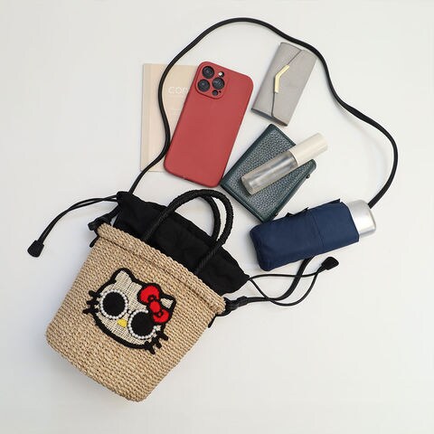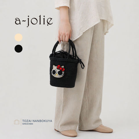 a-jolie アジョリー キティ ショルダーバッグ サンリオ コラボ キャラクター sim26-ss12 レディース 春夏 お出かけ バッグ かごバッグ レディースバッグ アバカ【ナチュラル】