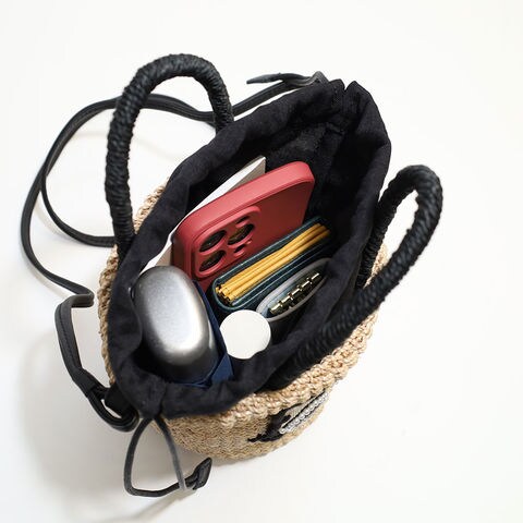 中身が見えにくい巾着タイプのインナーポーチ付きで、防犯面も安心。荷物の飛び出しを防ぎながら、すっきり整理して収納できます。バッグの可愛さを損なわず、使いやすさをしっかり考えられた設計です。