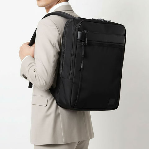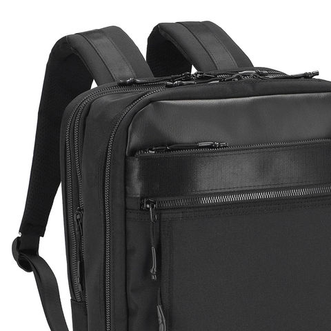 本体には撥水加工を施したポリエステル素材を採用。突然の雨や移動中の水はねも気にせず使え、ビジネスシーンでも安心。タフさと上品さを両立した素材感も魅力です。