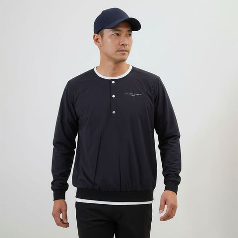 撥水性と防風性を備えた生地は突然の天候変化にも対応。ストレッチ性もあり、スイングや動作を妨げません。
