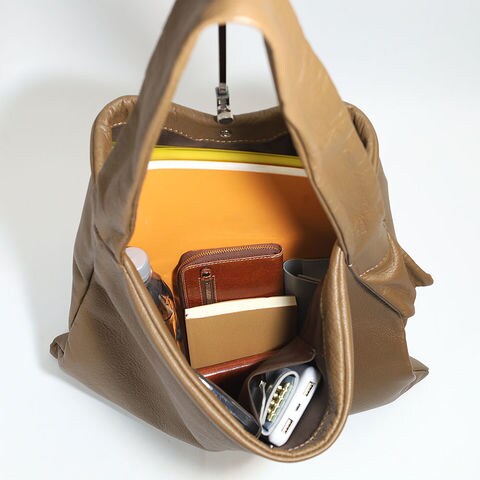 | シリーズ案内 | グローブ用のふっくらとした柔らかな革に、ハリとしっとり感を与えたTIDEWAYオリジナルレザー「PUF」。 ユニセックスデザインのワンハンドルトートです。 マットな質感と、装飾の無いシンプルなデザイン。お仕事用としてもおすすめです。 使い込む程に柔らかく馴染み、フォルムの変化もお楽しみ頂けます。 |