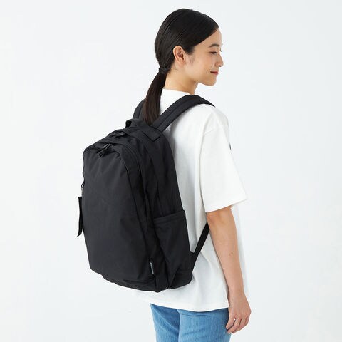 メイン収納は2層構造のマルチコンパートメント設計。荷物を用途別に分けて収納できるため、中身が混ざりにくく、必要な物をすぐに見つけられます。25L容量で日常使いに最適です。