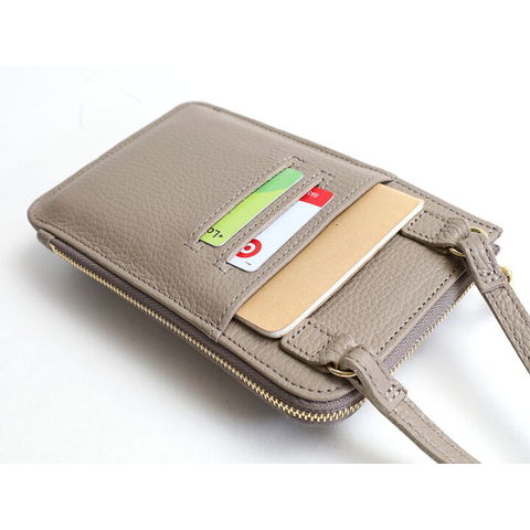上品で女性らしいシュリンクの型押しレザーのスマートフォンポシェット。 柔らかく、コーディネートを選ばないベーシックな雰囲気が魅力です。 外側には携帯が収納できるポケットがあり、L字ファスナーを開けるとコイン、カードが収納できます。 お財布としての機能も兼ね備えているので、これひとつでお出かけが可能です。 |