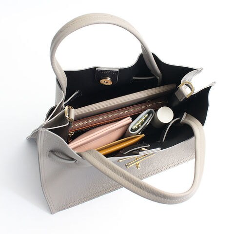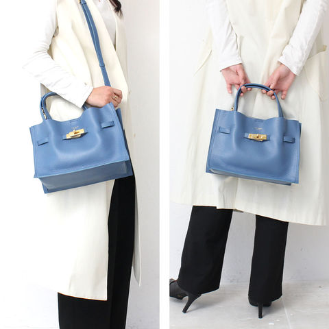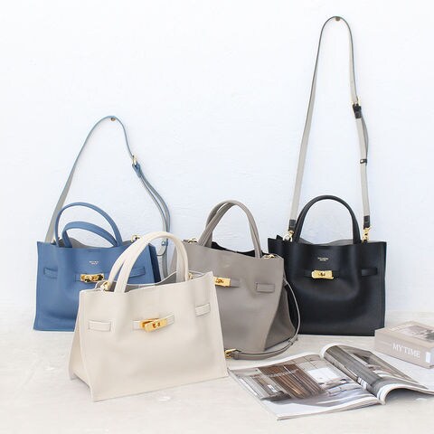 長財布や必需品がすっきり収まるちょうどいいサイズ感。オンにもオフにも対応する万能トートです。