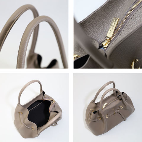 しなやかで傷が付きにくいシボ型押しのダブルフェイスレザーを使用し、上質さと扱いやすさを両立しています。ソフトな質感と軽さが魅力で、日常の動きに自然になじむ柔らかな仕上がりです。長く使うほど愛着が増し、VIOLAdOROらしい品の良さを日々感じられる素材です。
