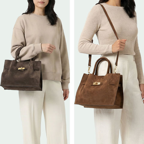 ショルダーバッグとして使えば軽快に、ストラップを外せば上品なハンドバッグに早変わり。シーンに合わせて持ち方をチェンジできます。