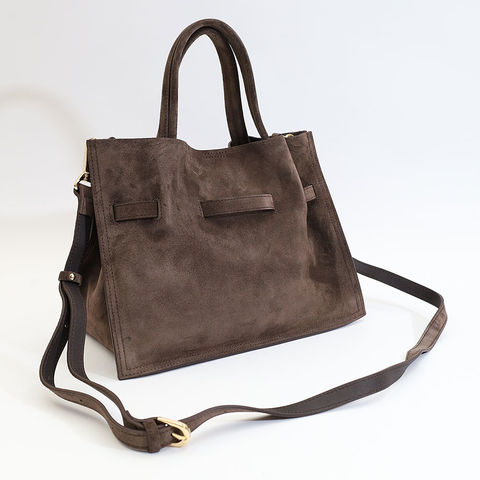 やわらかなスエード素材が季節感を引き立て、コーデに品のあるムードをプラス。触れるたびに心地よい高級感を楽しめます。