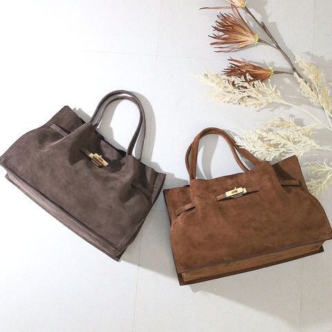 スエード特有の温かみと陰影が秋冬の装いに自然に溶け込み、コーディネートに季節らしさをプラスします。落ち着いたカラー展開で大人の日常に合わせやすく、普段使いはもちろん特別なシーンでも活躍。素材そのものの存在感でシンプルな服装も華やかに見せてくれます。