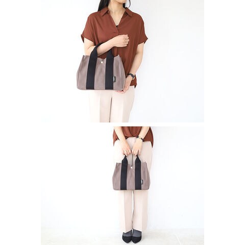 シンプルでモダンな雰囲気のあるベーシックなデザインのトートバッグでお仕事使いやマザーズバッグとしてもご使用いただけます。