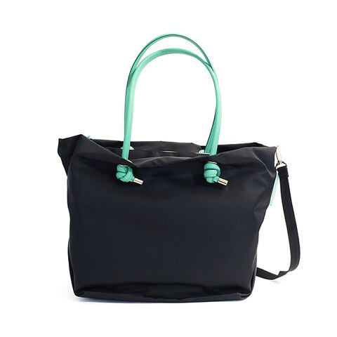 ノットハンドルがアクセントになったトートバッグ シンプルなデザインのボディにノットハンドルがアクセントになっています。 内側は3層に分かれており、ファスナーを閉めたままサイドのポケットにスマホやパスなどを収納できます。 撥水性があるのでお手入れも簡単で、軽量で使いやすいトートバッグです。 A4サイズが収納可能なので、普段使いや通勤でもご使用いただけます。 |
