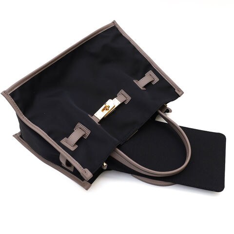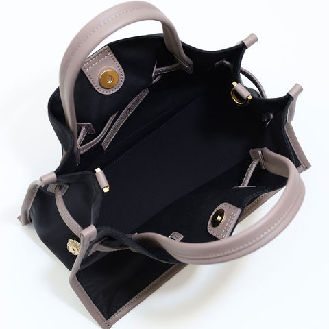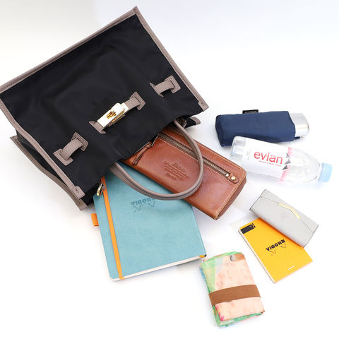 バッグの縁にイタリアンレザーのパイピングを施し、全体の印象を引き締めたデザイン。ナイロンの軽やかさに革の品格をプラスすることで、シンプルながら洗練された雰囲気に仕上げています。持つだけで装いにきちんと感が生まれ、大人の女性にふさわしい上品さを演出します。