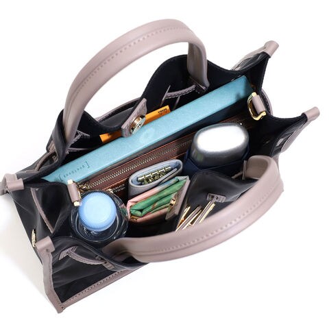 コンパクトに見えながら、長財布や500mlペットボトルがしっかり収まる実用的なサイズ感。底板付きで型崩れしにくく、荷物を入れても美しいシルエットを保ちます。日常に必要な持ち物をすっきり収納でき、普段使いからお出かけまで安心して使える設計です。