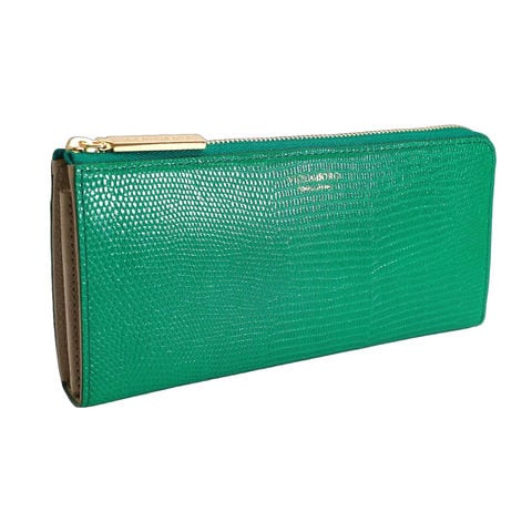女性の手元を彩るリザード型押しL字財布