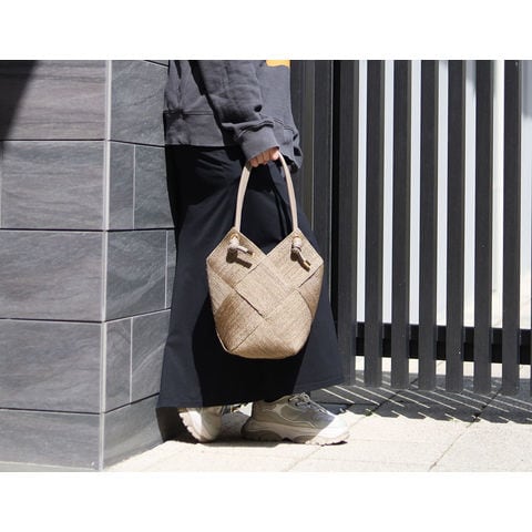 丁寧に織り込まれたアバカを大きめのメッシュで仕上げた、他の一般的なかごバッグとは異なる雰囲気が印象的。