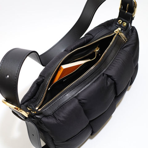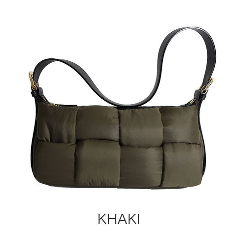 テープ状のナイロンを組み合わせた個性的なボンディング仕様。シンプルながら立体感のある表情が、コーディネートに程よいアクセントを加えます。