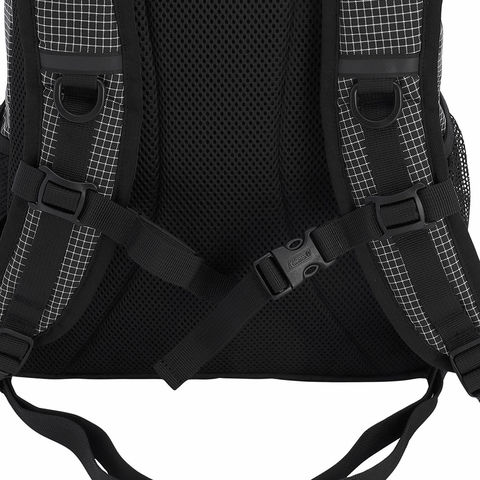 背面パネルとショルダーベルトには通気性の良いメッシュ素材を使用し、クッション性も確保。肩への負担を軽減し、長時間背負っても疲れにくい快適な使い心地です。