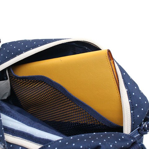 フロントにファスナーポケット、サイドにはメッシュポケットを装備。