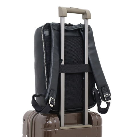 【外装】 ・ファスナーポケット×2 【内装】 ・オープンポケット×3、ペンホルダー×3、PC収納ポケット×1 【仕様】 ・Aサイズ対応 ・キャリーオンベルト 過去に生産終了となったオールレザービジネスリュックをリバイバル。 すっきりしたフォルムと大きすぎないサイズ感で男女問わずビジネスシーンでお選びいただけます。。 ビジネスシーンに欠かせない機能も充実。メインスペースはA4サイズに対応しており、ペンポケットやクッション材入りのノートPCポケットなどが配置されています。。 メッシュ素材が使用された背面にはキャリーオンベルトが設置されていて、出張が多い方にもおススメ。 ベルト裏には貴重品も安心の各氏ポケットを設けています。 機能充実でコスパのきいたビジネスリュックです。 ※素材の自然な風合いを生かすため、色止め加工を最小限にとどめております。そのため雨天でのご使用や、汗・水分を含んだ場合、または衣類等との摩擦により、多少の色落ち・色移りする事もありますのでご注意下さい。 ※天然の革を使用している為、革の個体差により、表面にシワ(血筋)や生前についた傷、シボ、色ムラ、黒点などは、革の生きた証ともなりますので、ご理解ください。 |